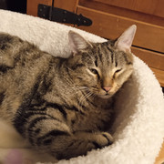 La petite minette elle est sage elle dort mangé cherche de la chaleur. |